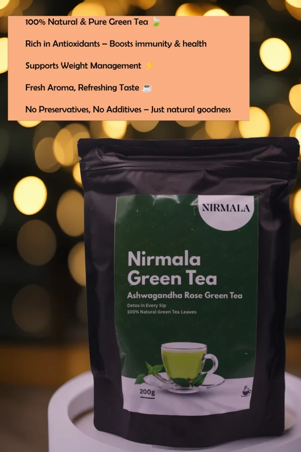 ✅ Ashwagandha Rose Green Tea – A calming mix of green tea, ashwagandha, and rose petals for stress relief and balance.