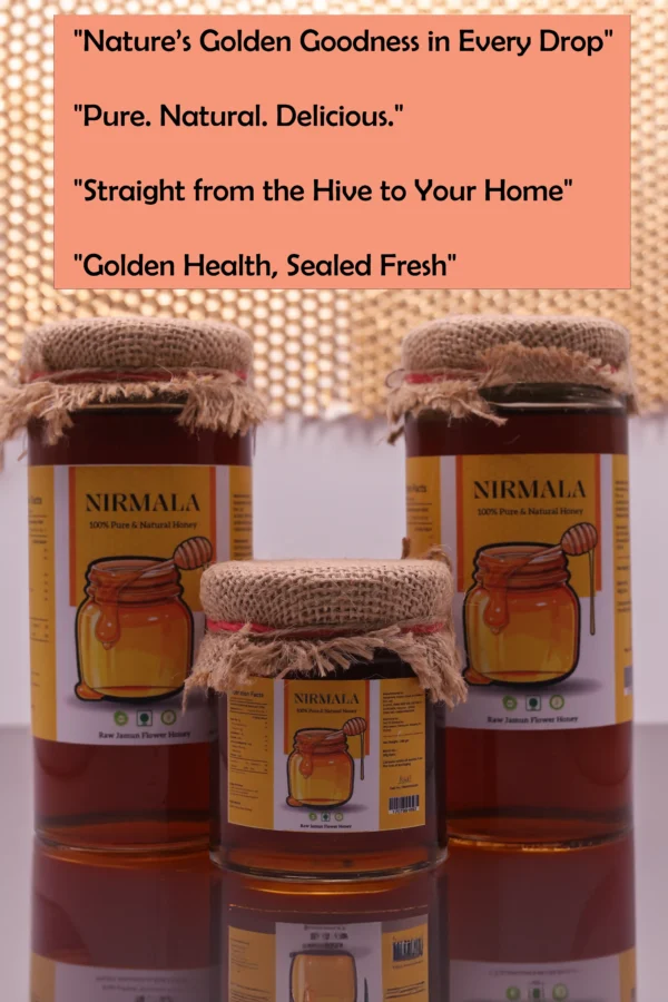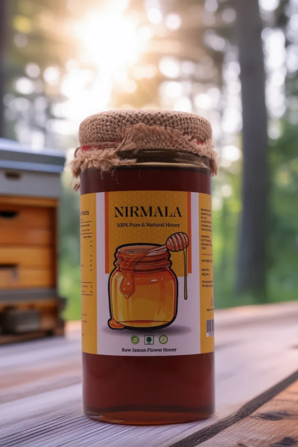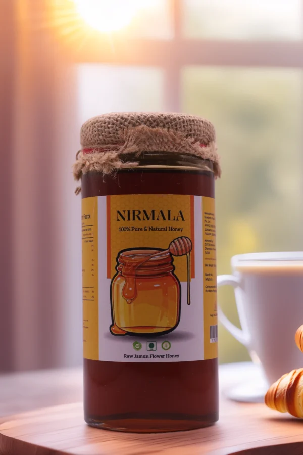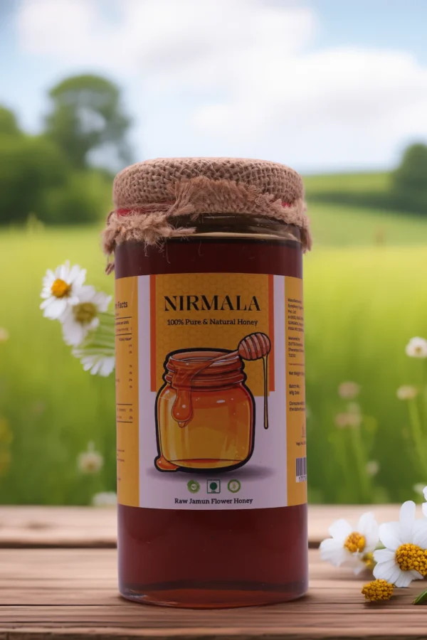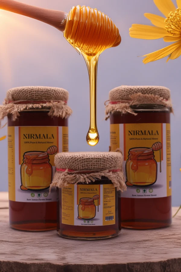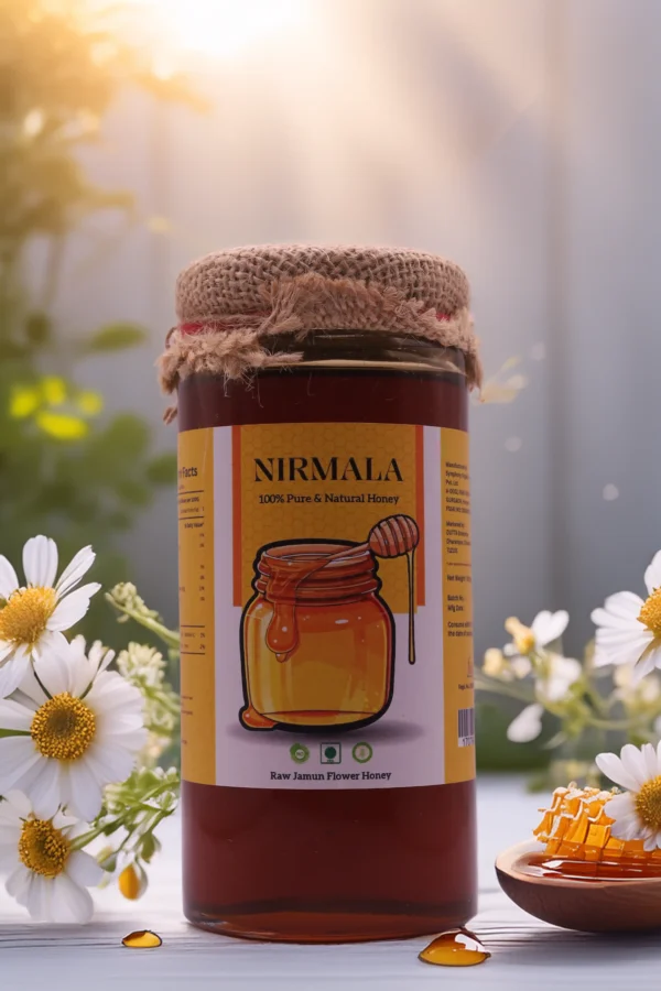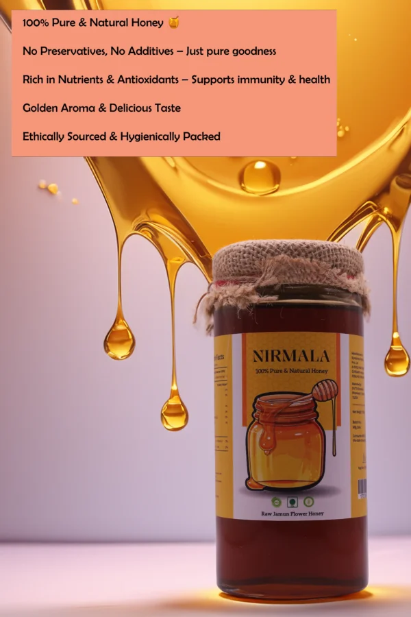 Indulge in the goodness of NirmalaNaturals Raw Jamun Flower Honey (500gm). Harvested naturally from Jamun flower nectar, this honey is raw, unprocessed, and packed with essential nutrients. Its rich, slightly tangy flavor makes it not only delicious but also beneficial — supporting digestion, immunity, and blood sugar management.