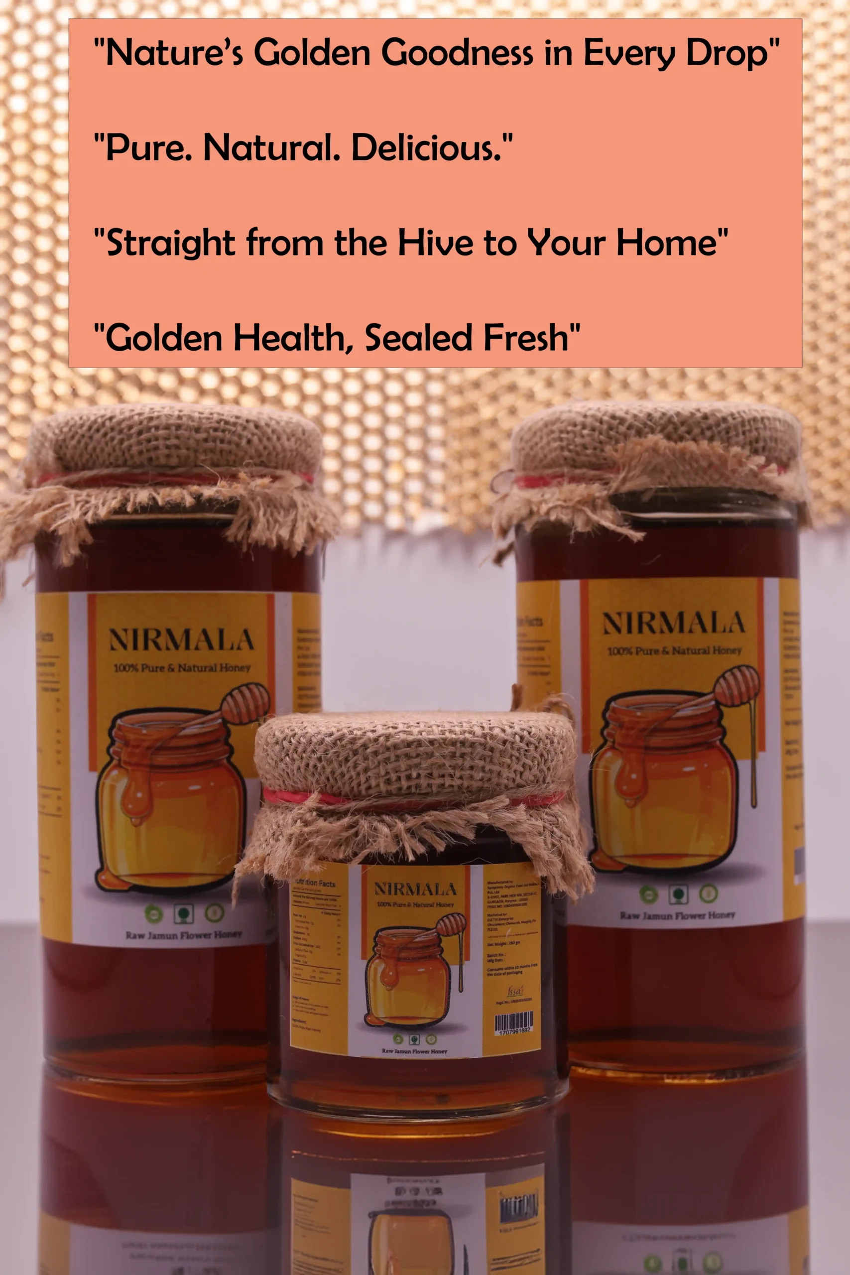Indulge in the goodness of NirmalaNaturals Raw Jamun Flower Honey (500gm). Harvested naturally from Jamun flower nectar, this honey is raw, unprocessed, and packed with essential nutrients. Its rich, slightly tangy flavor makes it not only delicious but also beneficial — supporting digestion, immunity, and blood sugar management.