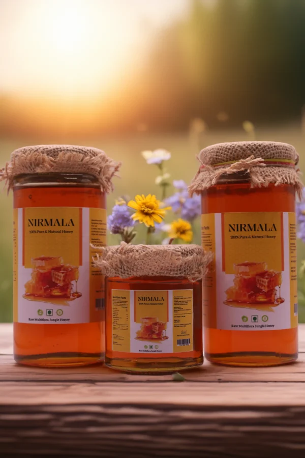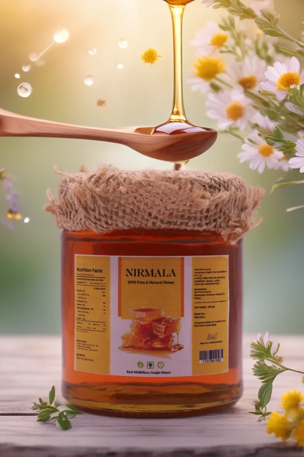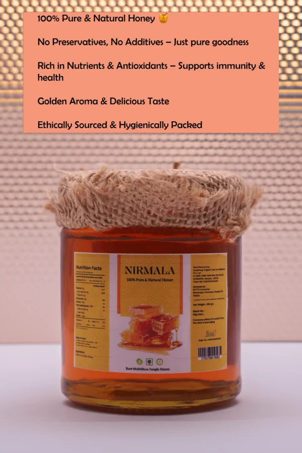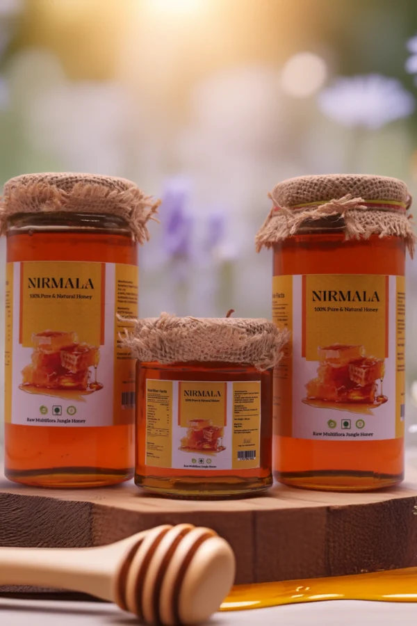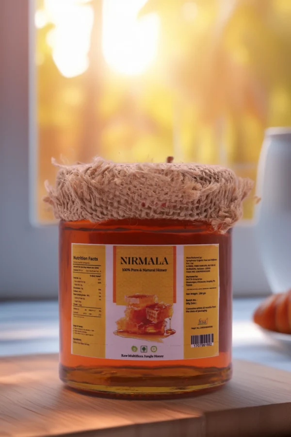 Experience nature’s untouched purity with NirmalaNaturals Raw Multiflora Jungle Honey (250gm). Sourced from wildflowers deep in the jungle, this honey is 100% raw, unprocessed, and naturally rich in enzymes, vitamins, and minerals. Its unique floral aroma and robust taste reflect the biodiversity of the forest.