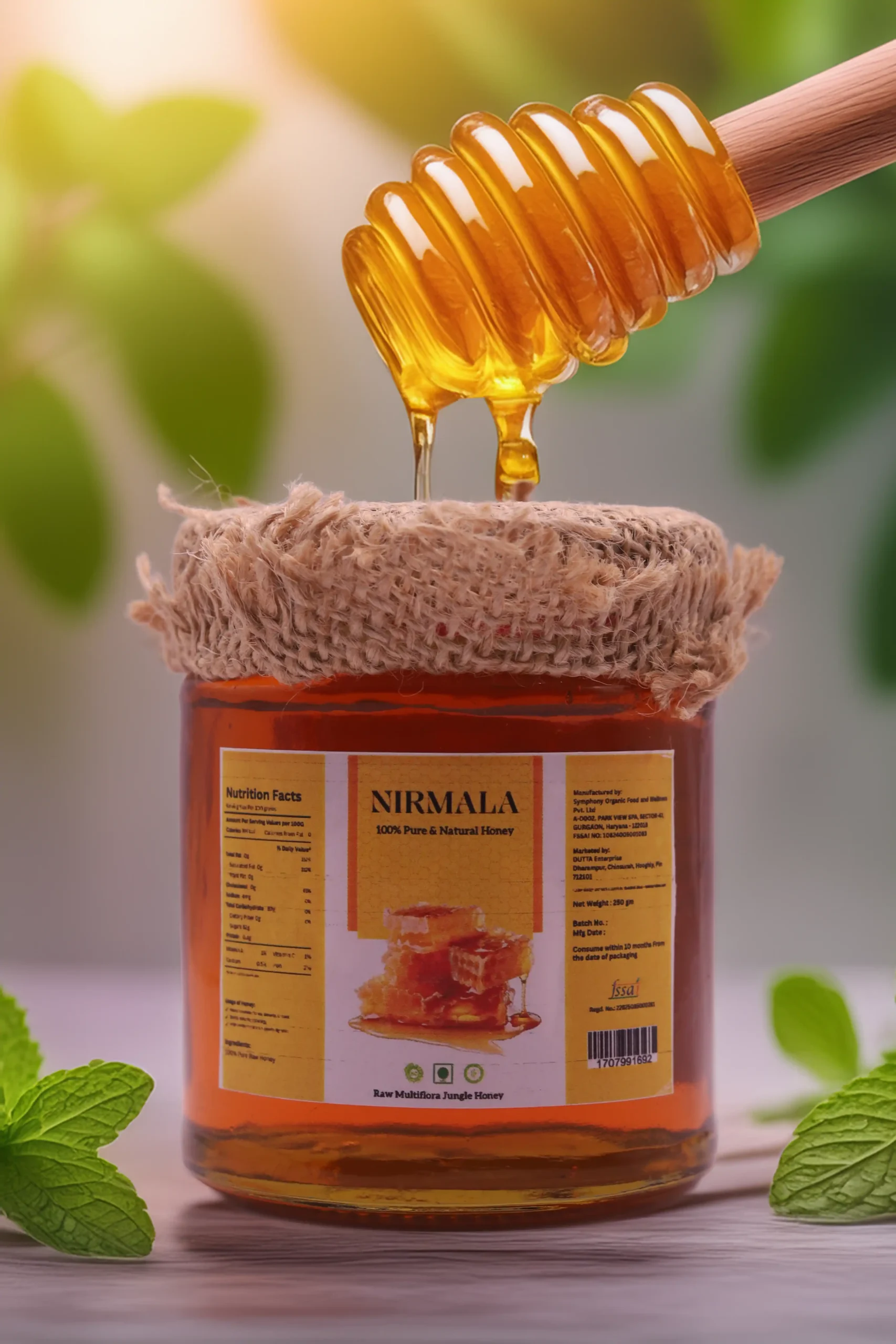 Experience nature’s untouched purity with NirmalaNaturals Raw Multiflora Jungle Honey (250gm). Sourced from wildflowers deep in the jungle, this honey is 100% raw, unprocessed, and naturally rich in enzymes, vitamins, and minerals. Its unique floral aroma and robust taste reflect the biodiversity of the forest.