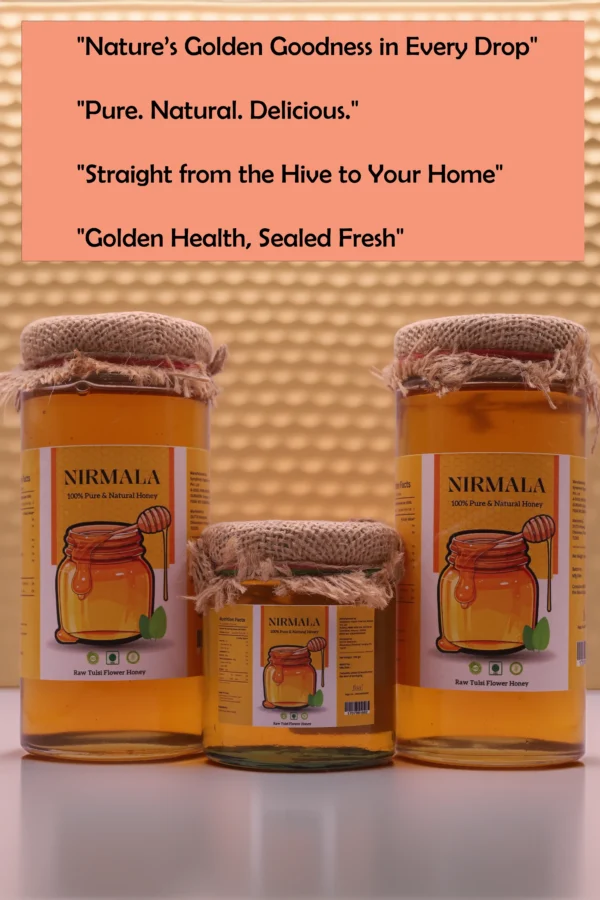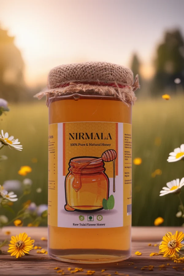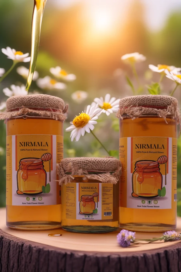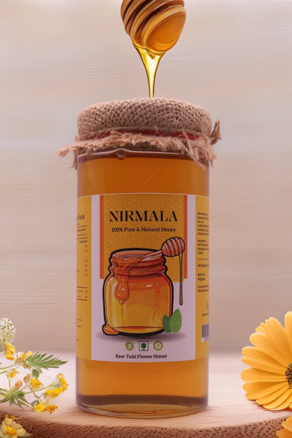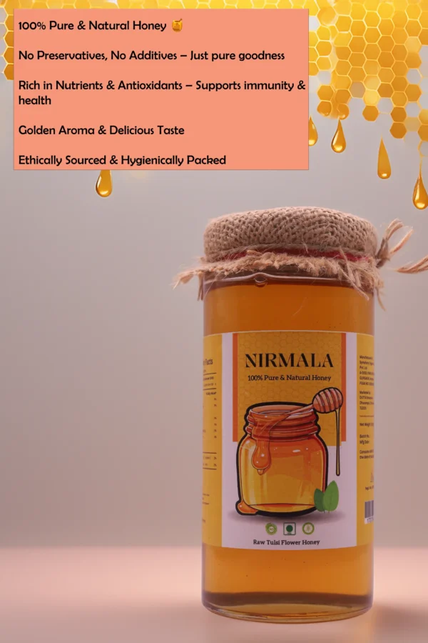 Delight in the richness of NirmalaNaturals Raw Multiflora Jungle Honey (500gm). Harvested from wild jungle blossoms, this honey carries a deep, multifloral flavor that is both nourishing and invigorating. Being raw and unprocessed, it preserves its natural antioxidants and health-boosting properties.