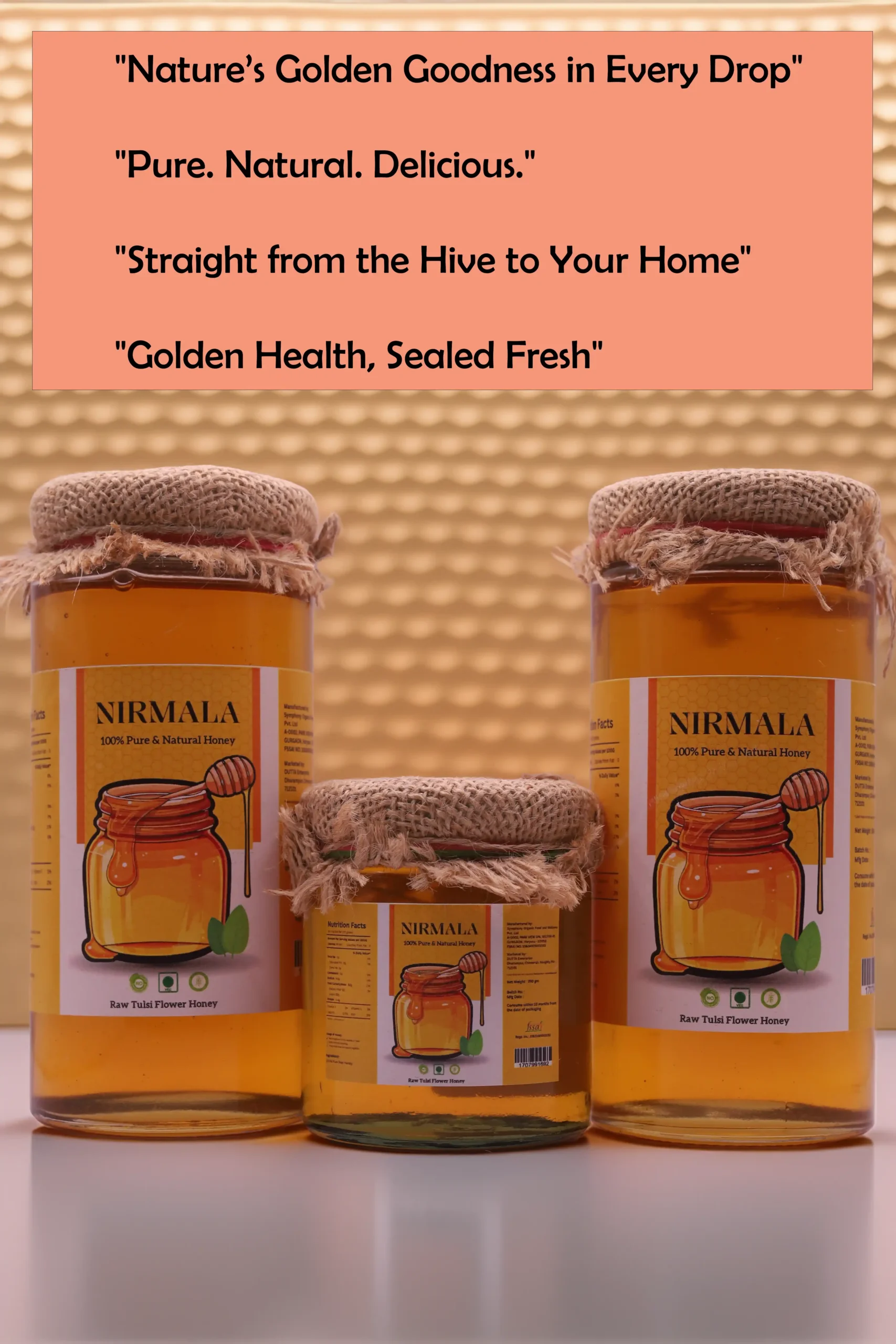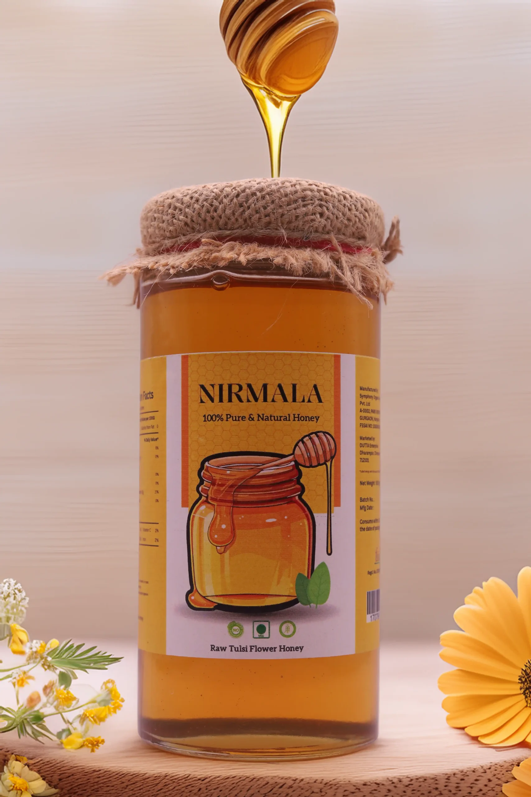 Delight in the richness of NirmalaNaturals Raw Multiflora Jungle Honey (500gm). Harvested from wild jungle blossoms, this honey carries a deep, multifloral flavor that is both nourishing and invigorating. Being raw and unprocessed, it preserves its natural antioxidants and health-boosting properties.